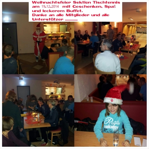 Jahresabschluss der Sektion Tischtennis des Sport-und Freizeitvereins Mixdorf![]() ![]() Am 15. Dezember 2017 feierten die Mitglieder der Sektion Tischtennis ihren jährlich stattfindenden Jahresabschluss im Sport-und Freizeitzentrum in Mixdorf. Im weihnachtlich festlich dekorierten Versammlungsraum wartete ein leckeres Weihnachtsessen mit Ente, Klößen, Grün-und Rotkohl auf die fröhlich gestimmten Mitglieder. Nach einer kurzen Ansprache des Sektionsleiters konnte ausgiebig geschlemmt und gefeiert werden. Im Anschluss an das leckere Essen wurde wieder mit viel Freude (das nun schon zum Ritual werdende) „Riesen-China“ gespielt. Hier werden 4 (!) Tischtennisplatten zusammengeschoben, sodass eine riesige Spielfläche entsteht….. Natürlich muss dann auch um diese Fläche gelaufen werden, um den zugespielten Ball des Gegners zu erreichen ;-) Und das mit Ente und Klößen im Bauch ……… Nach vielen gemeinsamen Stunden mit leckerem Essen, lustigen Gesprächen und viel Sport-und Bewegung gingen alle Teilnehmer mit dem Gefühl nach Hause, Mitglied einer großen Familie und Gemeinschaft zu sein ! Natürlich ist so ein Jahresabschluss auch die Möglichkeit, das abgelaufene Jahr Resümee passieren zu lassen …. Als Erstes möchte ich allen Mitgliedern der Sektion sowie den Eltern unserer Kinder für das kollegiale Verhalten und die tolle Unterstützung danken. Den Kindern , die durch Schulwechsel und neue sportliche Interessen einen anderen Weg gehen, geben wir ein Sprichwort mit, welches diese Zeit vielleicht gut beschreibt: „ Gib den Kindern Wurzeln und den Heranwachsenden Flügel !“ In diesem Sinne - Wir wünschen Euch für die Zukunft alles Gute und hoffen, ihr hattet beim Tischtennis eine schöne Zeit und behaltet uns in guter Erinnerung ! Gleichzeitig haben mehrere Erwachsene neu ihren Weg in unseren Verein gefunden, die uns mittlerweile tatkräftig in unserer 2. Mannschaft unterstützen ….. Und DAS war eigentlich die größte Überraschung und Freude für mich als Sektionsleiter. Nach unserem erfolgreichen Abschneiden in der letzten Saison als Vizemeister gab es Interesse, eine neue 2. Mannschaft für den Punktspielbetrieb zu melden. In der aktuellen Saison werden viele neue Erfahrungen gesammelt, man fährt zu anderen Vereinen zum Punktspiel, hat als Mannschaftsleiter (Danke an Micha Stuckardt) auf einmal administrative Aufgaben zu erfüllen….. Wir beobachten eure spielerische und mentale Entwicklung mit großer Freude und sind uns sicher, dass ihr in absehbarer Zeit viele Erfolge erringen werdet ! Was wäre ein Verein bzw. eine Sektion ohne Unterstützung von Sponsoren ? Hier gilt mein besonderer Dank ausdrücklich Herrn Dr. Eckart Krüger von der Orthopädie-Praxis am Markt in Müllrose , Herrn Hans-Joachim Kurth von „Computer-Kurth“ aus Müllrose und als neuem Sponsor Herrn Andreas Kemnitz von der „Deutschen Vermögensberatung“ ebenfalls aus Müllrose sowie Michael Wolff für ihre großzügige finanzielle Unterstützung unserer Sektion. Auch für 2018 wurde bereits Unterstützung zugesagt – dafür ein herzliches Dankeschön ! Ganz besonders danken möchte ich aber unseren Mitgliedern und Spielern Thomas Ernst und Gerd Lehmann für ihre Unterstützung im technischen Bereich (Reparatur von TT-Platten, Schlägern, Netzen und der Ausgestaltung der Geräteräume). Ihr „sponsort“ soooo viel Zeit - hier kann ich mich immer auf euch verlassen – Danke Jungs ! Ein großes Dankeschön an den Vorstand unseres Mixdorfer Sportvereins sowie die anderen Sektionen – Absprachen, Wünsche, Anregungen – jegliche von uns erbetene Unterstützung wurde von euch realisiert. Nur deshalb können wir so erfolgreich auftreten , DANKE. Zum Abschluss noch ein sehr herzliches Dankeschön im Namen aller Mitglieder an die Pächterin des Sport-und Freizeitzentrums Mixdorf Frau Daniela Luthe und ihre Familie. Toralf Bischof Sektionsleiter Tischtennis Sport-und Freizeitverein Mixdorf 1995 e.V.itere Aktivitäten unserer Sektion...zum Vergrößern Klicken Besuch der Weltbesten im Tischtennis Am Sonntag, den 31. Januar 2016 besuchten mehrere Tischtennis - Spieler des "SFM Mixdorf" die in Berlin als Weltcup ausgetragenen "German-Open" im Tischtennis. Neben hochkarätigen Ballwechseln mit Damen und Herren der gesamten Weltspitze (17 Spieler der Top 20-Weltrangliste !) gab es auch Gelegenheit zu interessanten Gesprächen über diesen tollen Sport ( u.a. mit Bundesjustizminister Heiko Maas während der Mittagspause). Nach spannenden Duellen im Halbfinale und Finale der Einzel- und Doppelkonkurrenzen wurde uns wieder bewusst, welch tolle Sportart wir in Mixdorf in unserem modernen Sport-und Freizeitzentrum ausüben können. Wir konnten auch Original-Autogramne von Welt-und Europameistern ergattern! Kommt doch mal vorbei: Trainingszeiten: Kinder: Mittwoch 18-19 Uhr Erwachsene: Freitag 19-21 Uhr Toralf Bischof Sektionsleiter Tischtennis SFM Sport-und Freizeitverein Mixdorf 1995 e.V. ![]() ![]() ![]() ![]() |